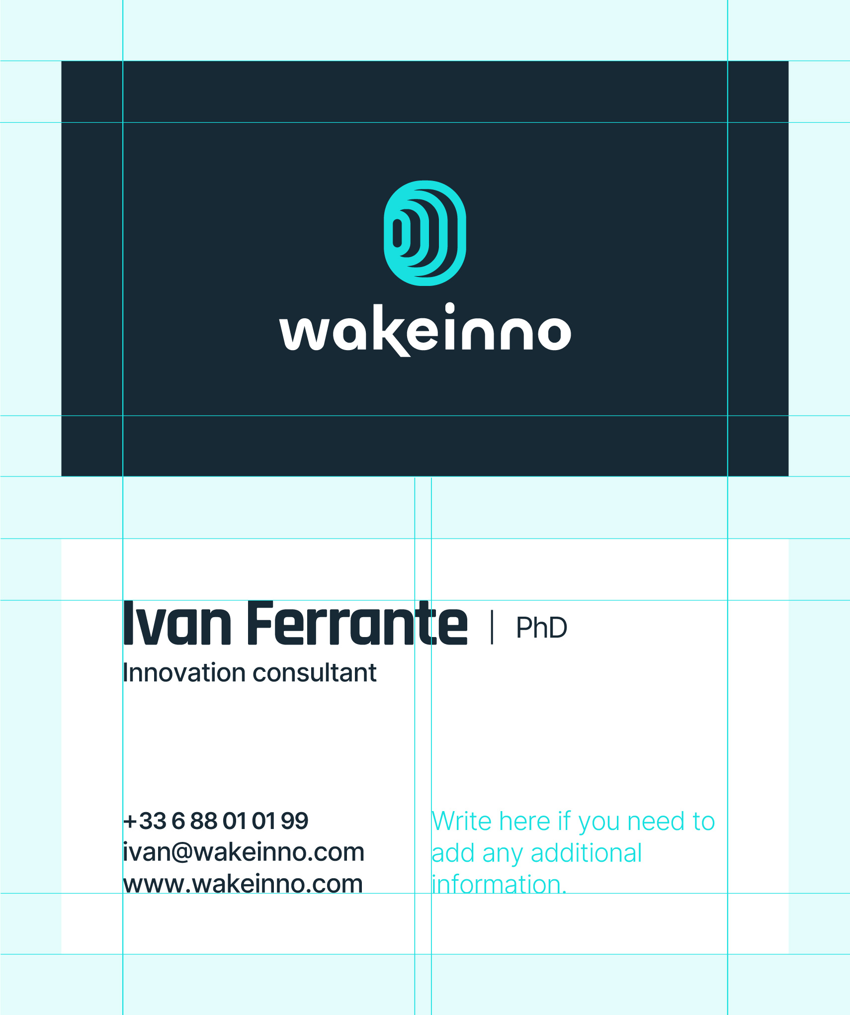 The Wakeinno logo consists of two elements: the symbol and the wordmark. The symbol can be used independently when space is limited, such as for app icons, social media avatars, and presentation slides.