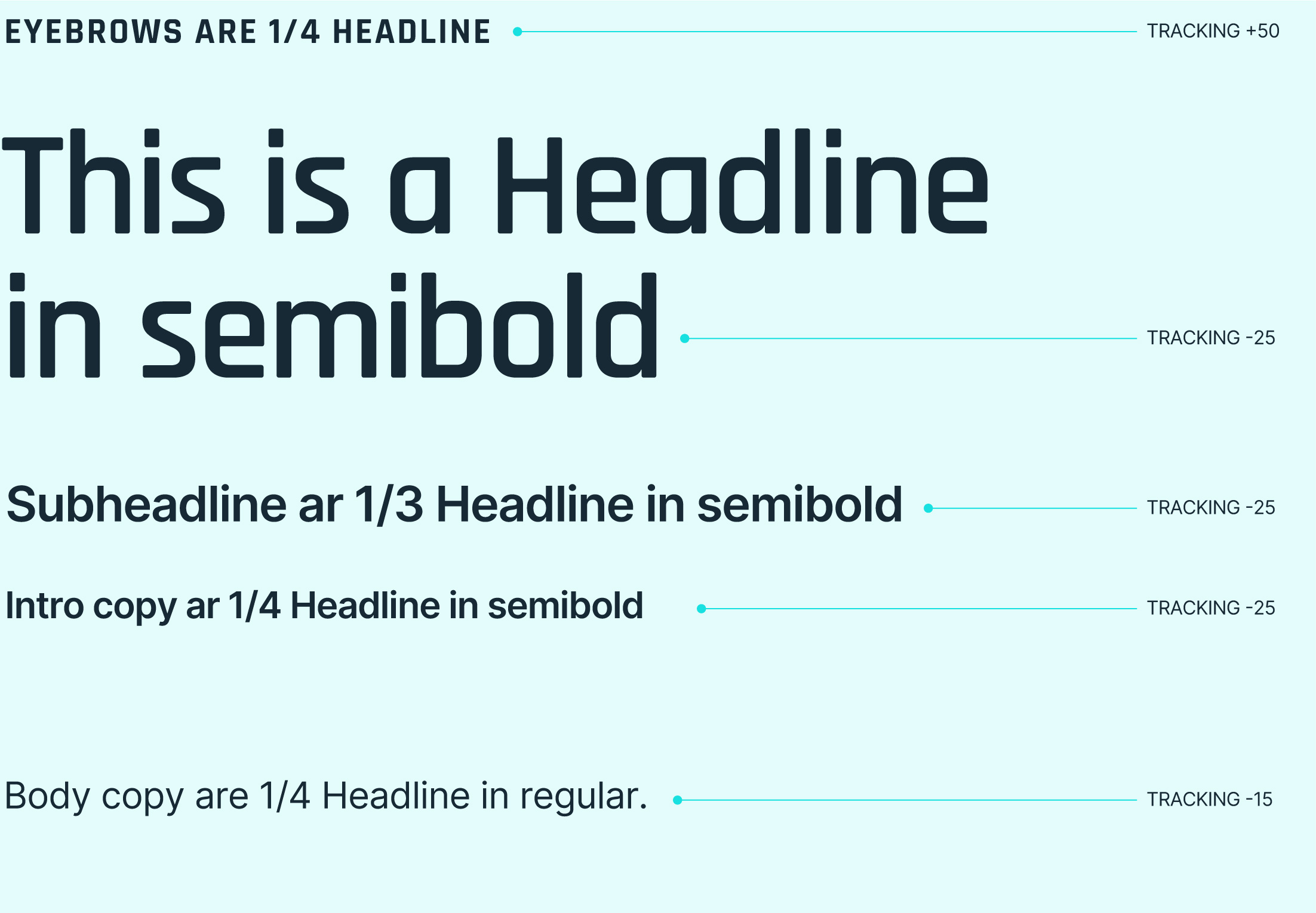 Letter spacing is reduced, except for Eyebrow text, ensuring that the letters never touch.