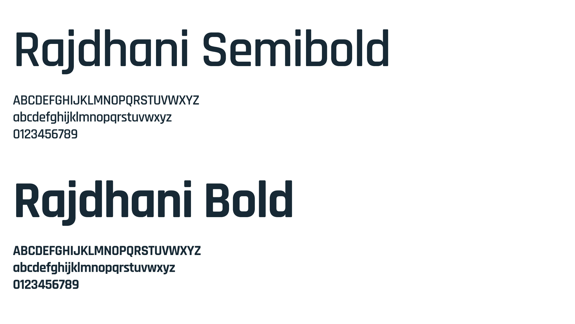 The Rajdhani font should be used in titles with two weights: semibold for all content and bold exclusively as a primary element, such as on presentation covers.