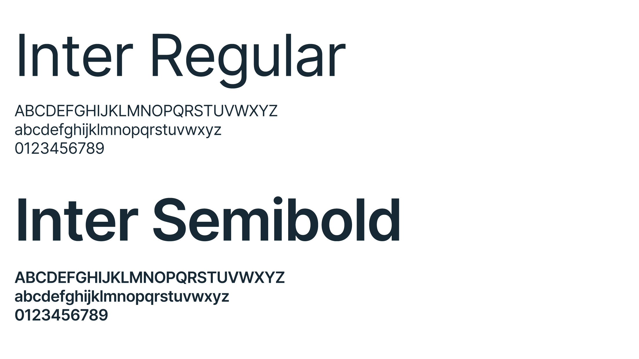 The Inter font should be used in either Regular or SemiBold weight. Regular is ideal for body text, ensuring clarity and legibility, while SemiBold can be employed to highlight important points or sections within the content.