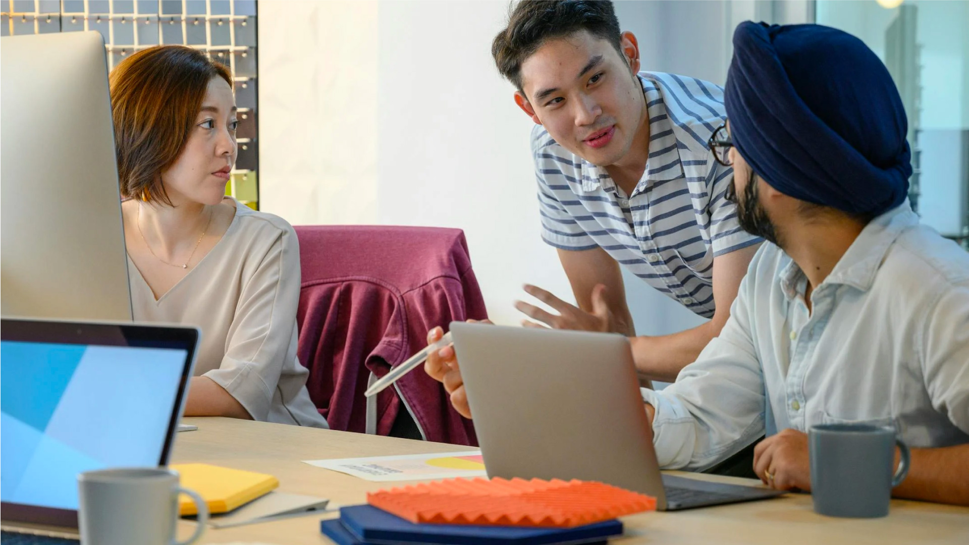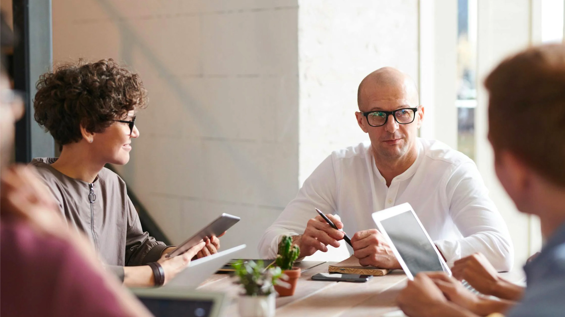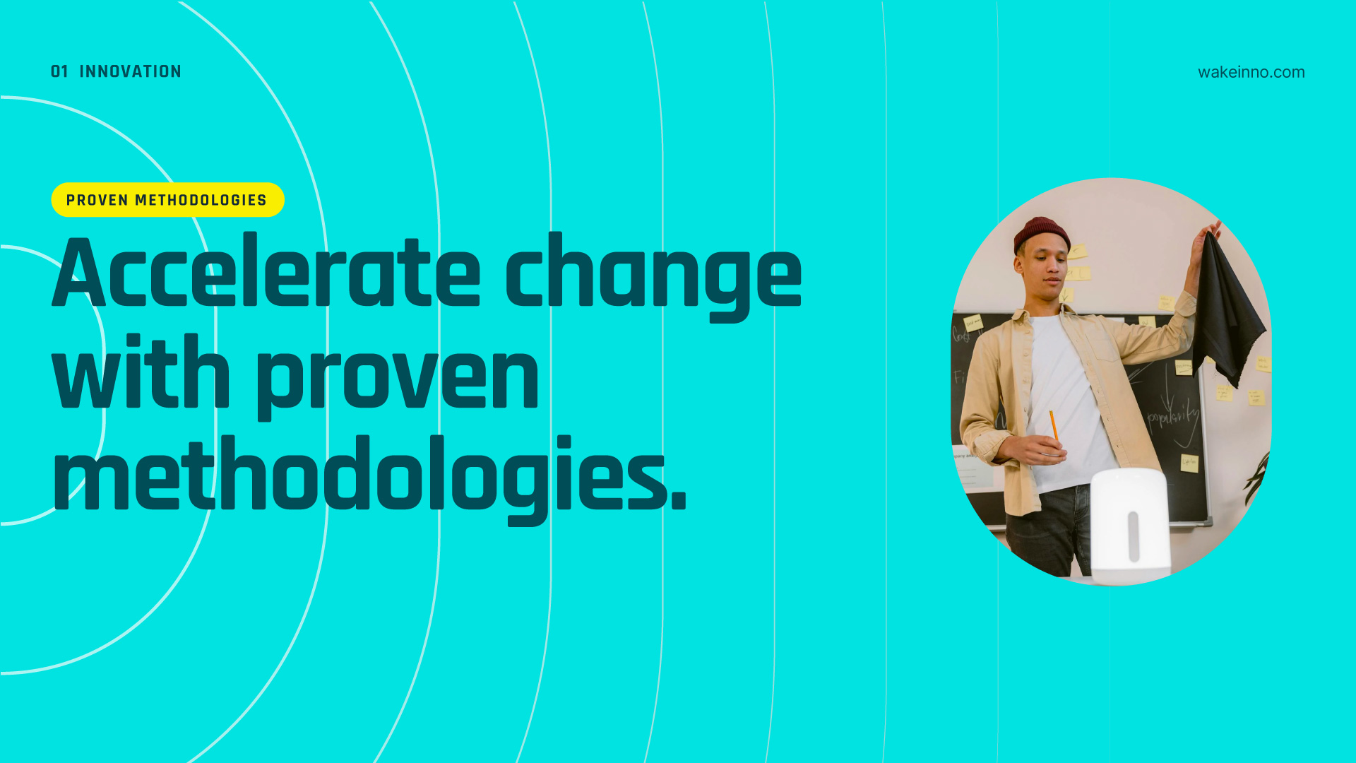 The photographic style chosen for Wakeinno is characterized by natural light coming from a window, creating a welcoming atmosphere. The images depict groups of people engaged in brainstorming activities, accompanied by IT tech elements that enrich the context.