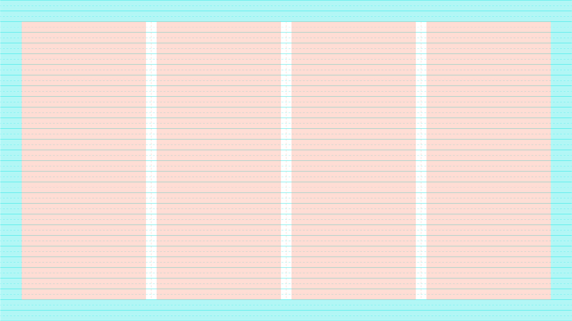 Once the grid is established, graphic elements are aligned to the grid lines. To facilitate the organization of information, you can use different layouts with 1, 2, 3, or 4 columns, with a margin equal to 2x the baseline grid.